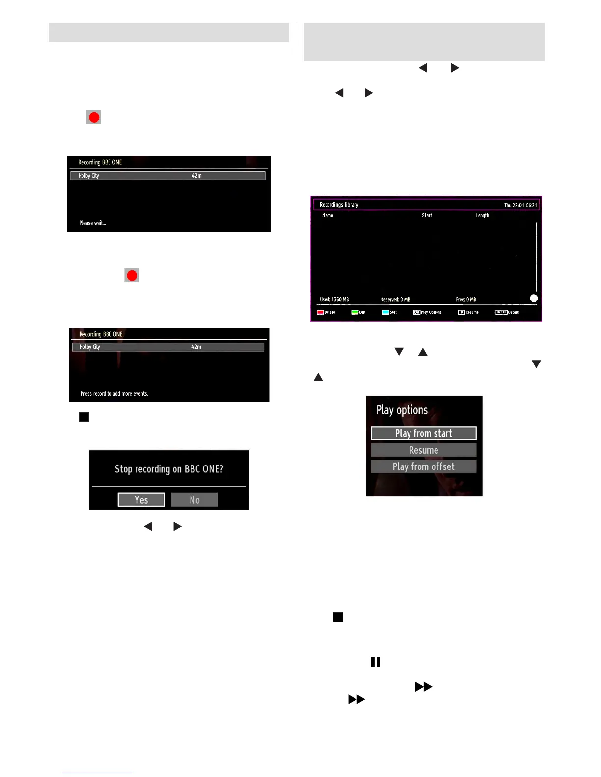 IMPORTANT: To record a programme, you should