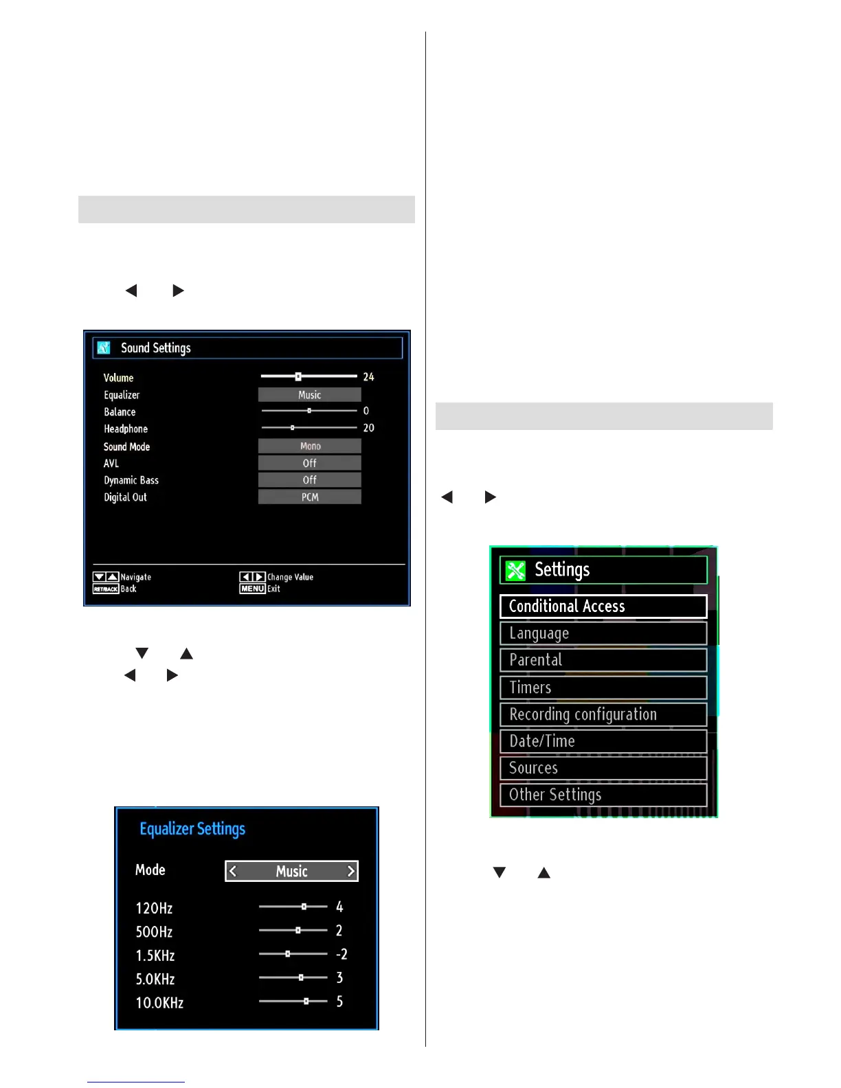 Equalizer: Press OK button to view equalizer sub-