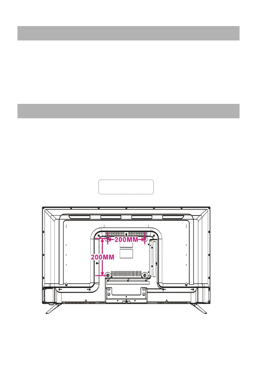 ● Contact a professional for assistance when wall mounting your TV. We are not