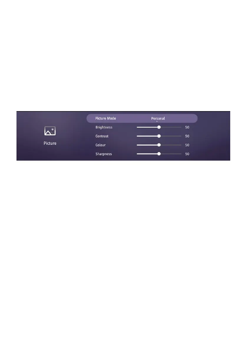 Note: If you adjusted Brightness, Contrast, Colour or Sharpness, Picture Mode will turn to