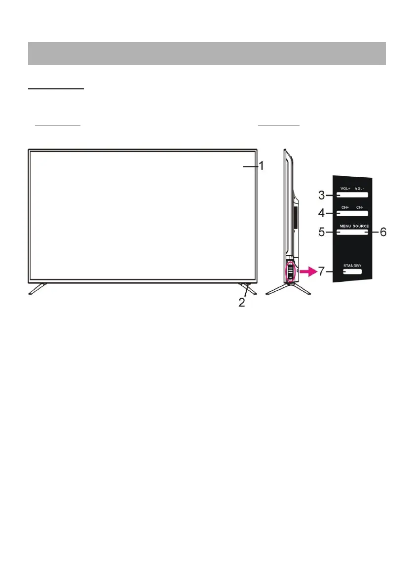 7. STANDBY button- To turn the TV ON/OFF.