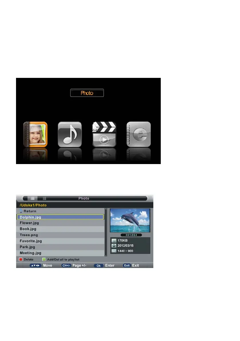 - Press LEFT/RIGHT navigation button to select Photo in the main menu and press OK