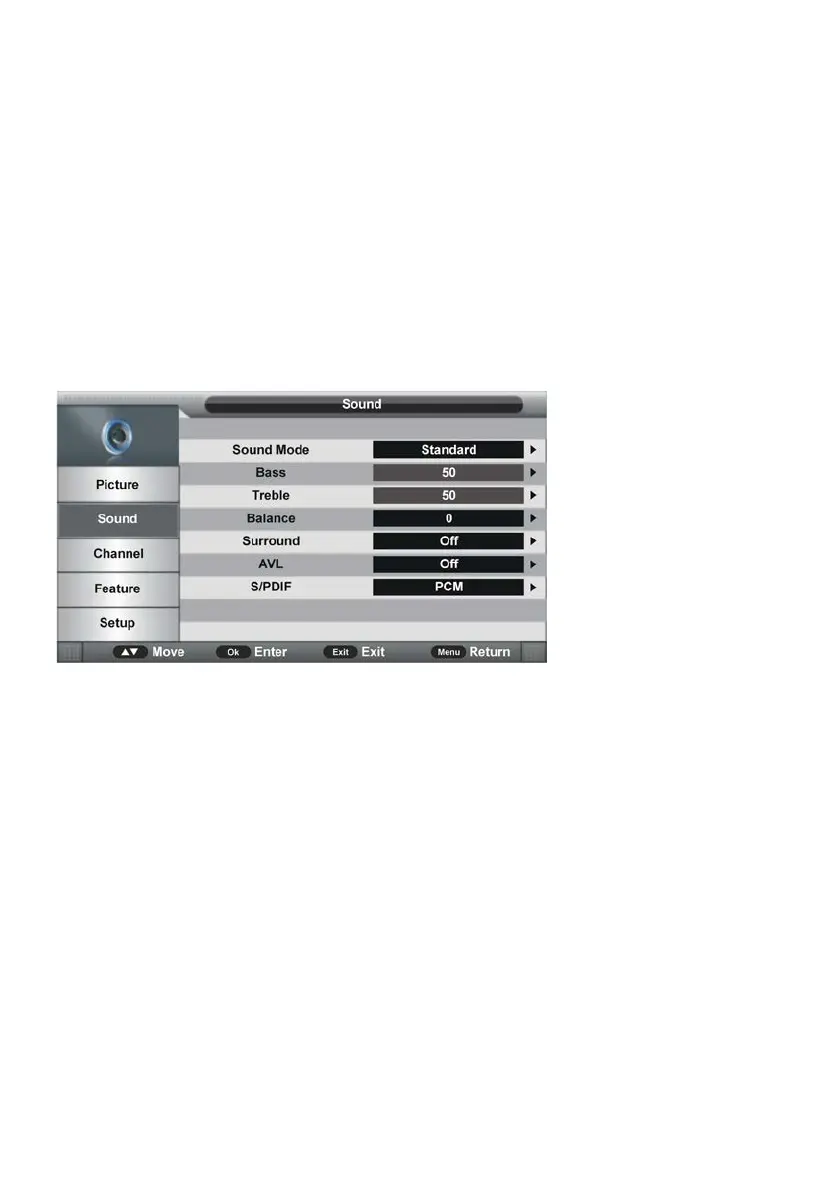 NOTE: The value of Bass and Treble is adjustable only in User sound mode.