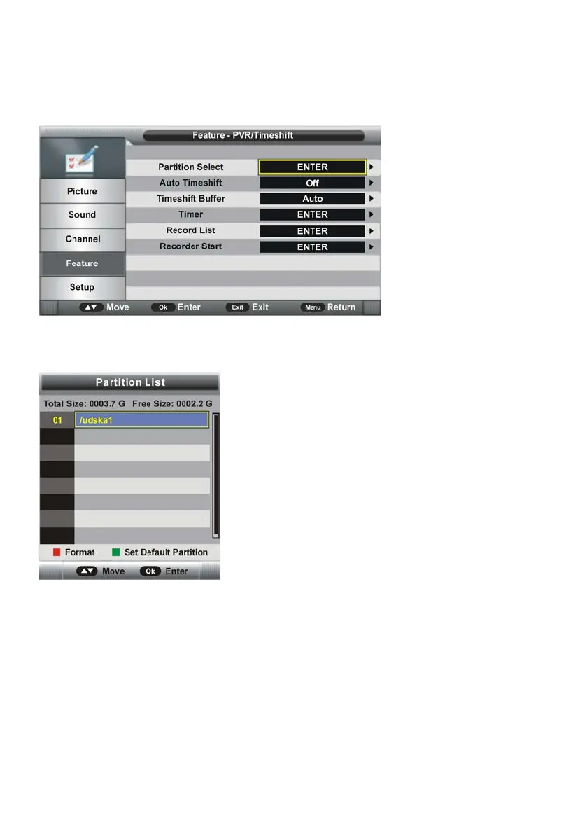 - Press RED button to enter a dialog box and then select OK to format your USB memory