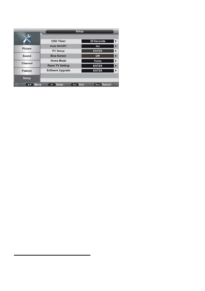 - Press OK or RIGHT navigation button to enter submenu and press UP/DOWN navigation