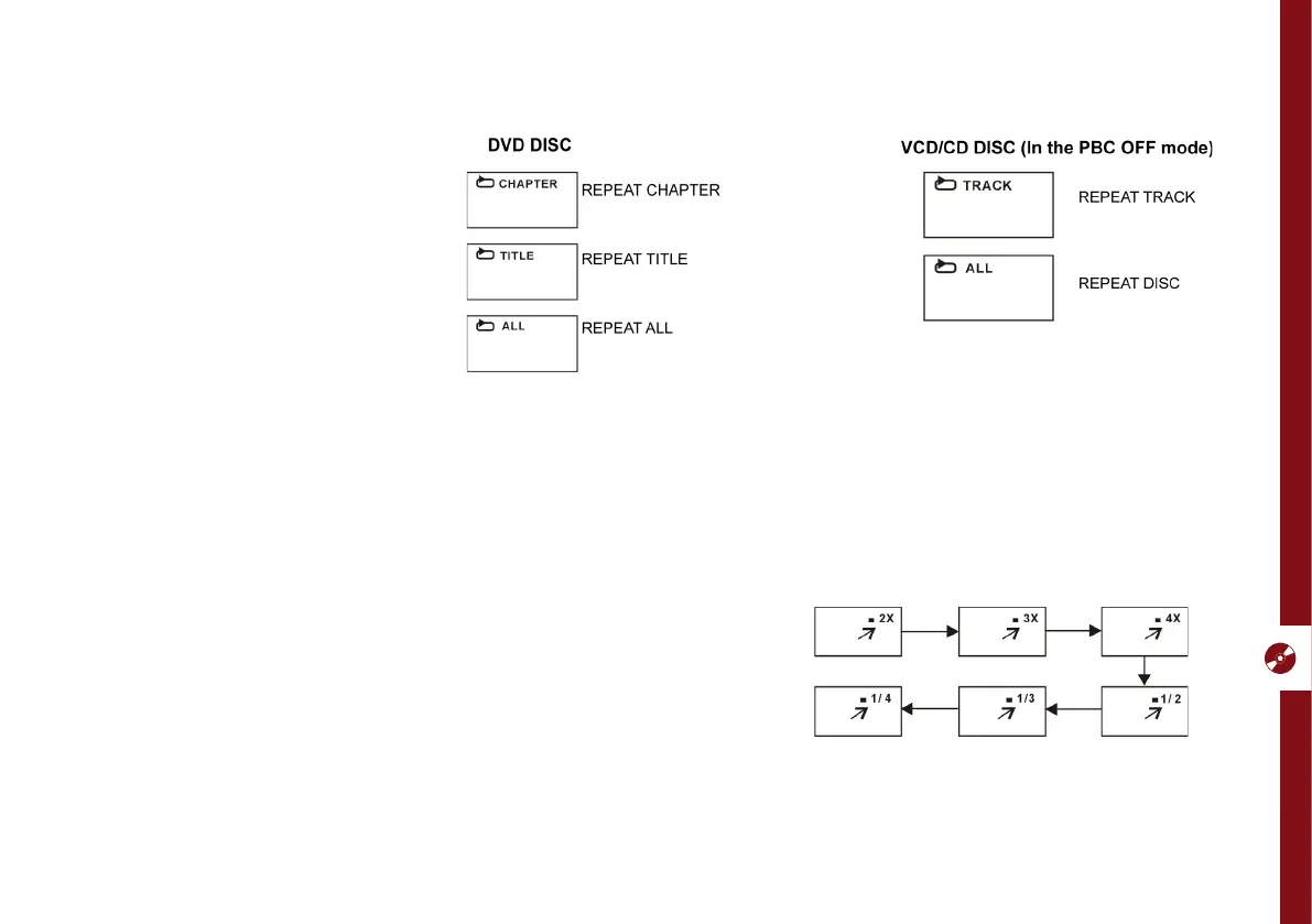 Press the REPEAT button during playback, it will repeat play one chapter or one title (for DVD disc), or