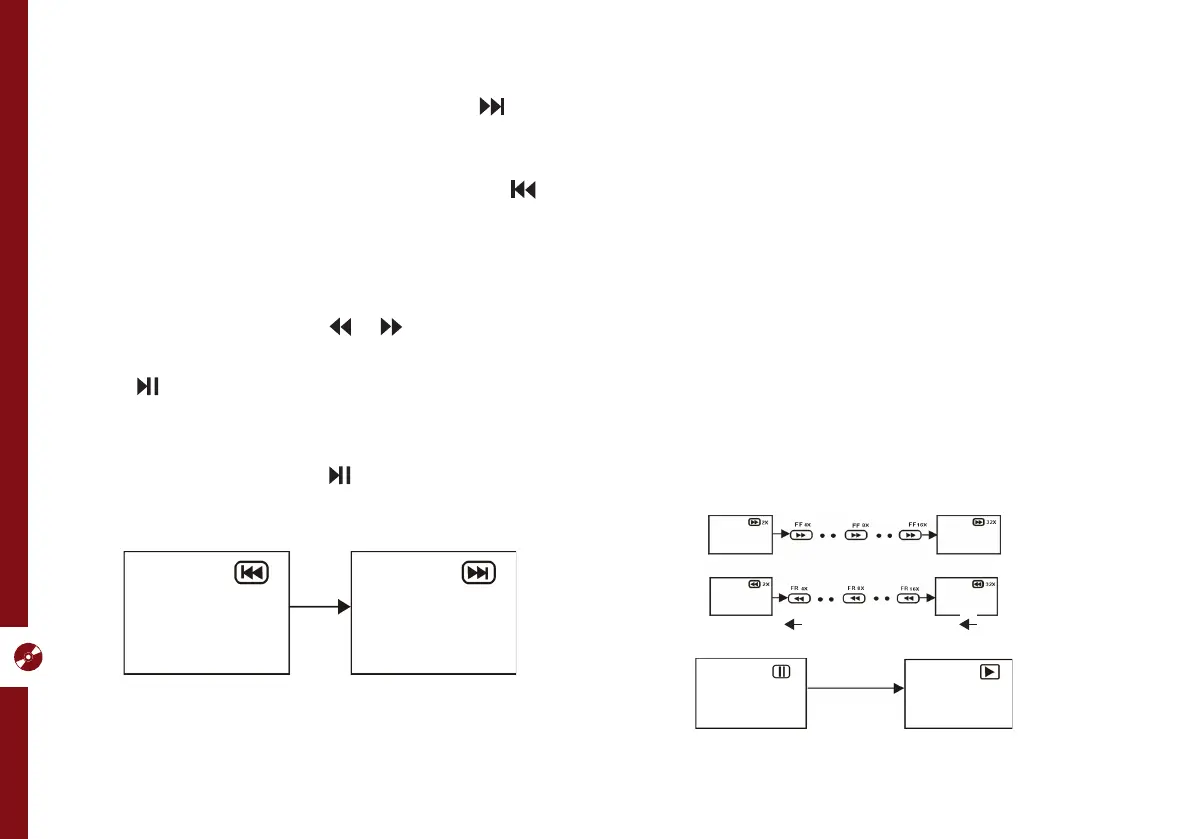 Skipping backward: During playback, press the