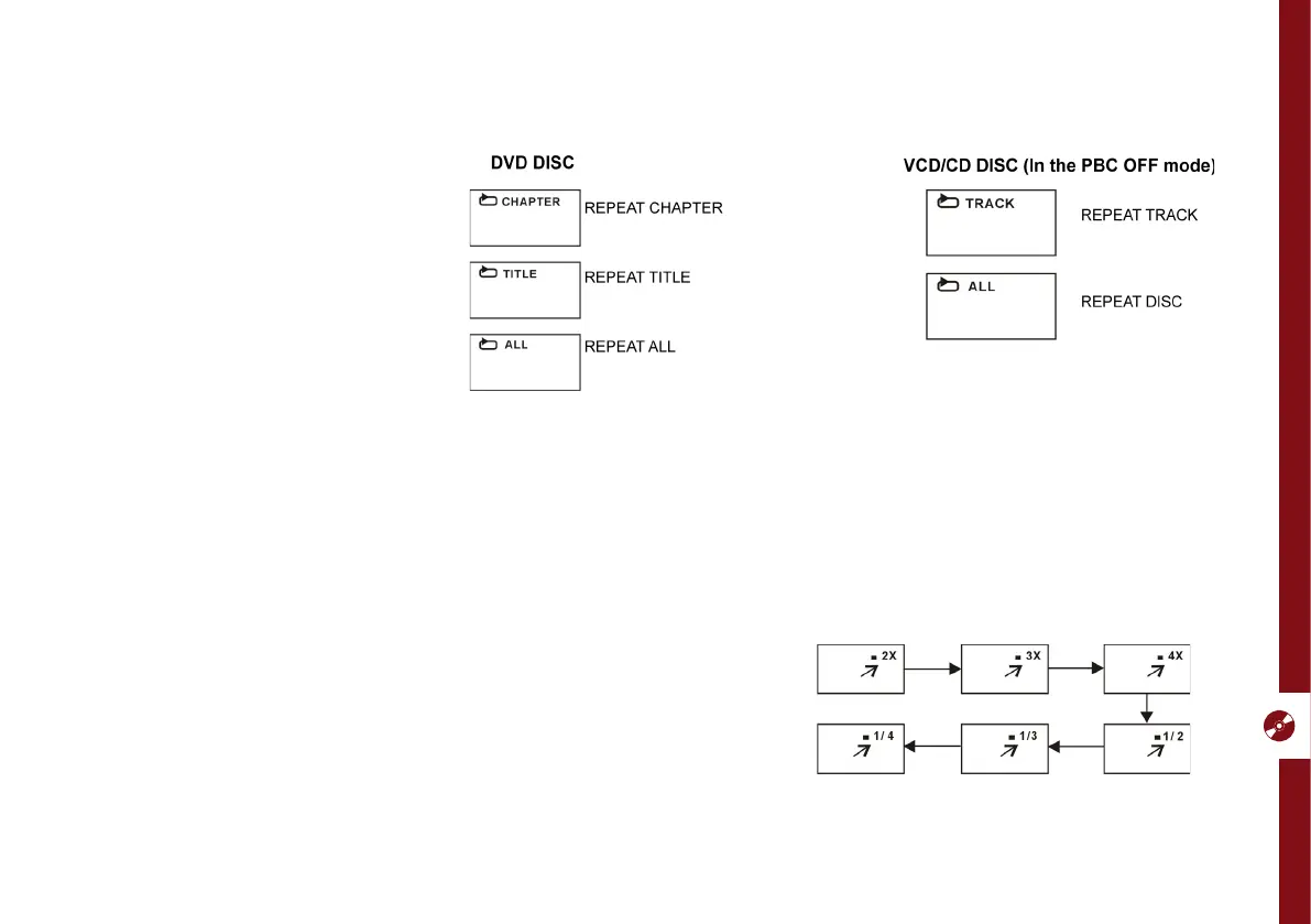 Press the REPEAT button during playback, it will repeat play one chapter or one title (for DVD disc), or repeat