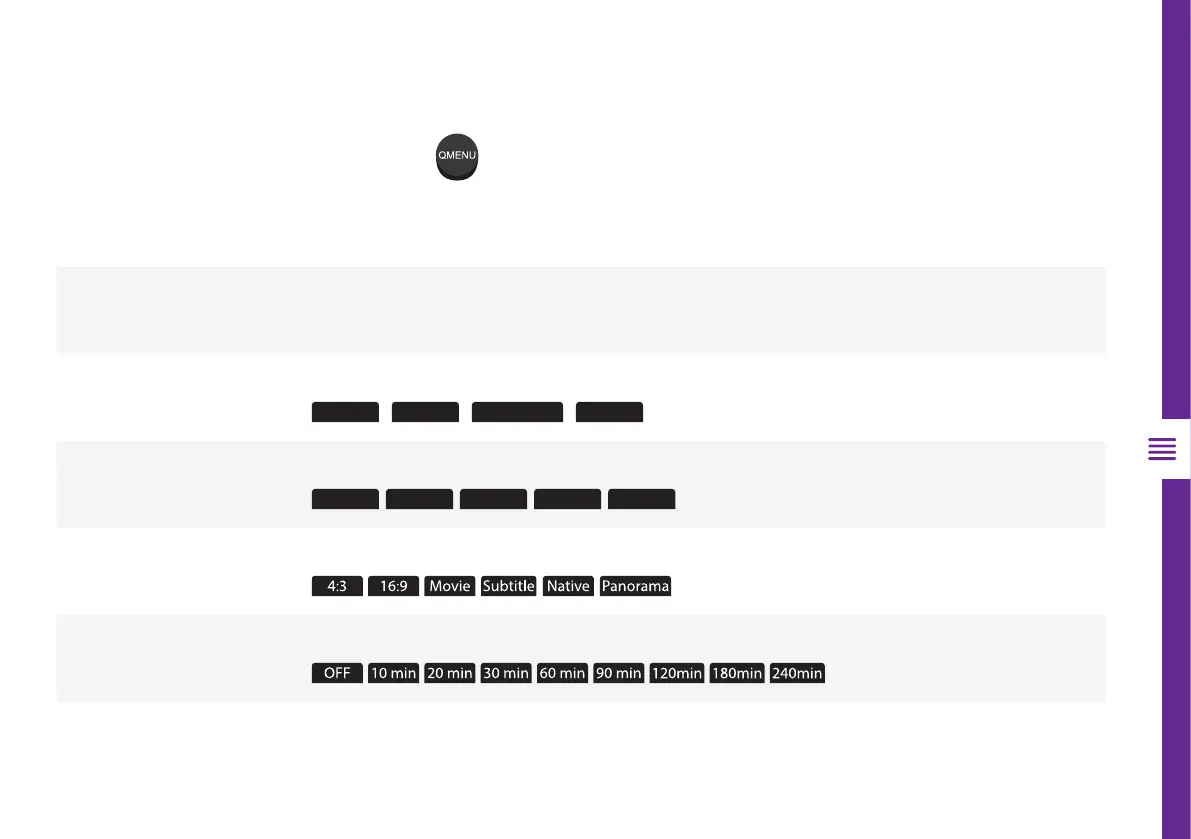 Set the sleep timer. The TV will turn off after the specified time has elapsed.
