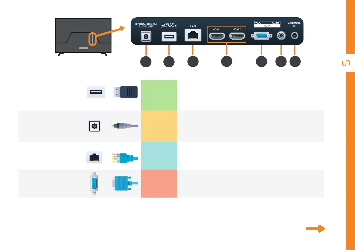 Connect an external digital audio device. Use an Optical cable