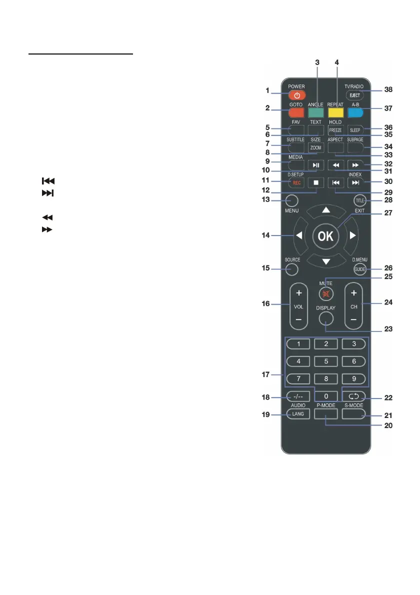 38 TV/RADIO: Switch the unit between TV and radio;