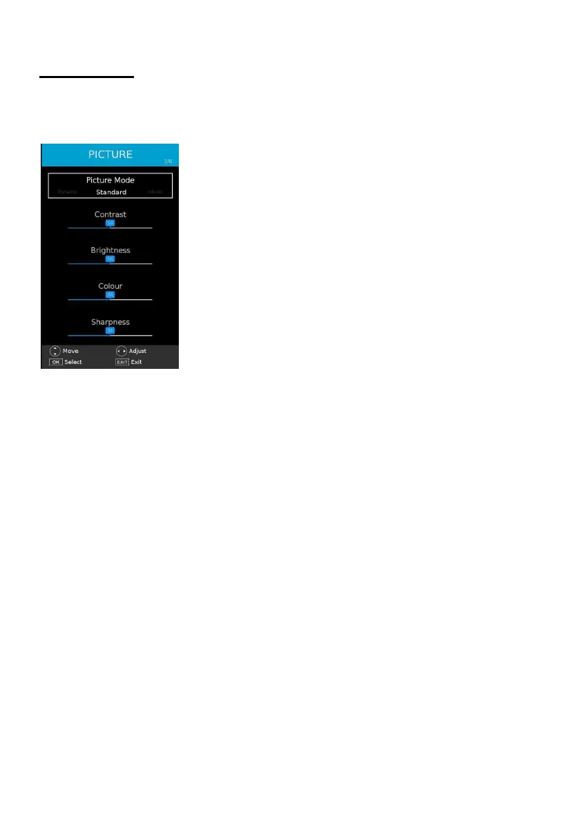 NOTE: When the value of Contrast / Brightness / Colour / Sharpness is changed, Picture