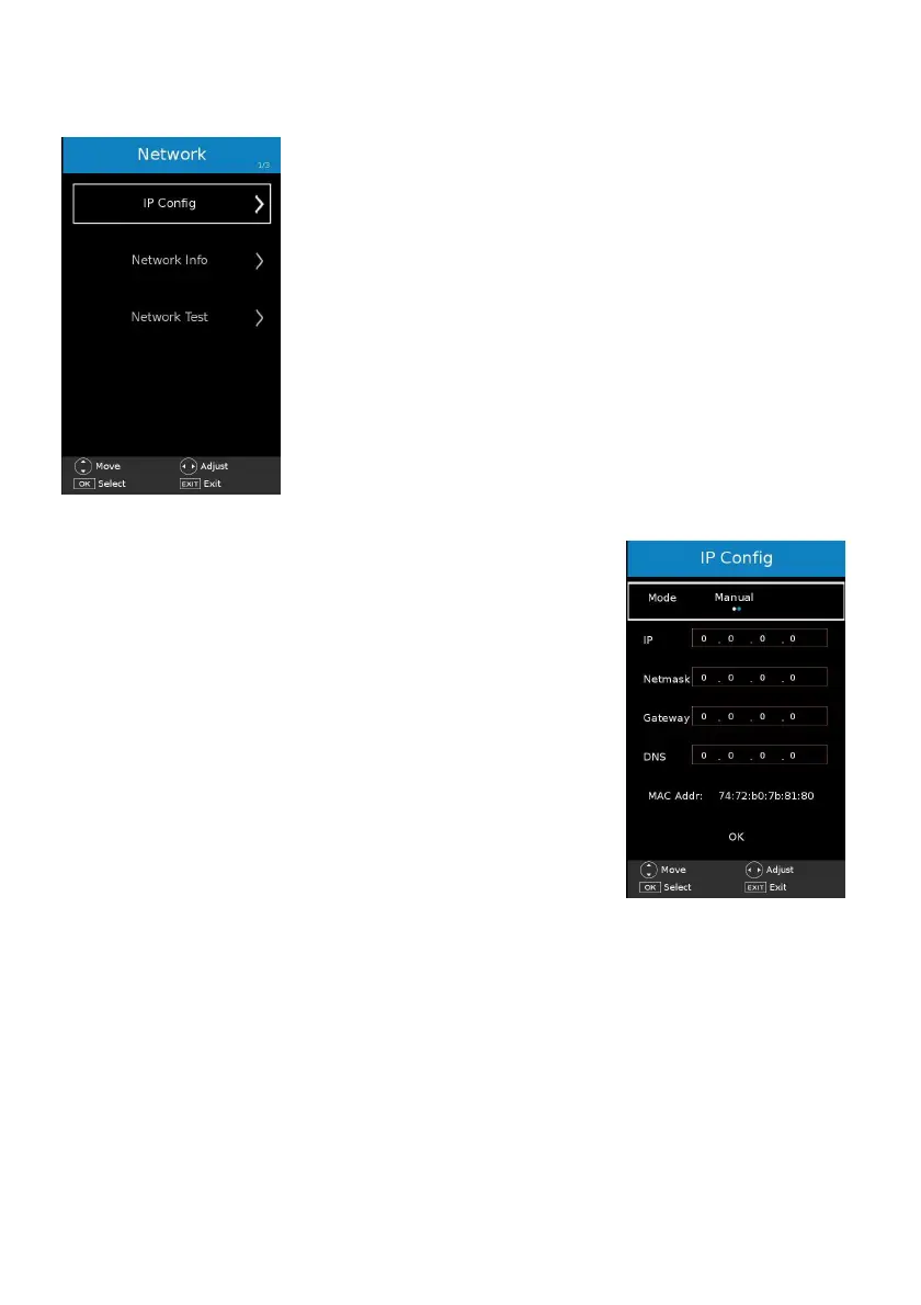 IP / Netmask / Gateway / DNS: press OK button to enter