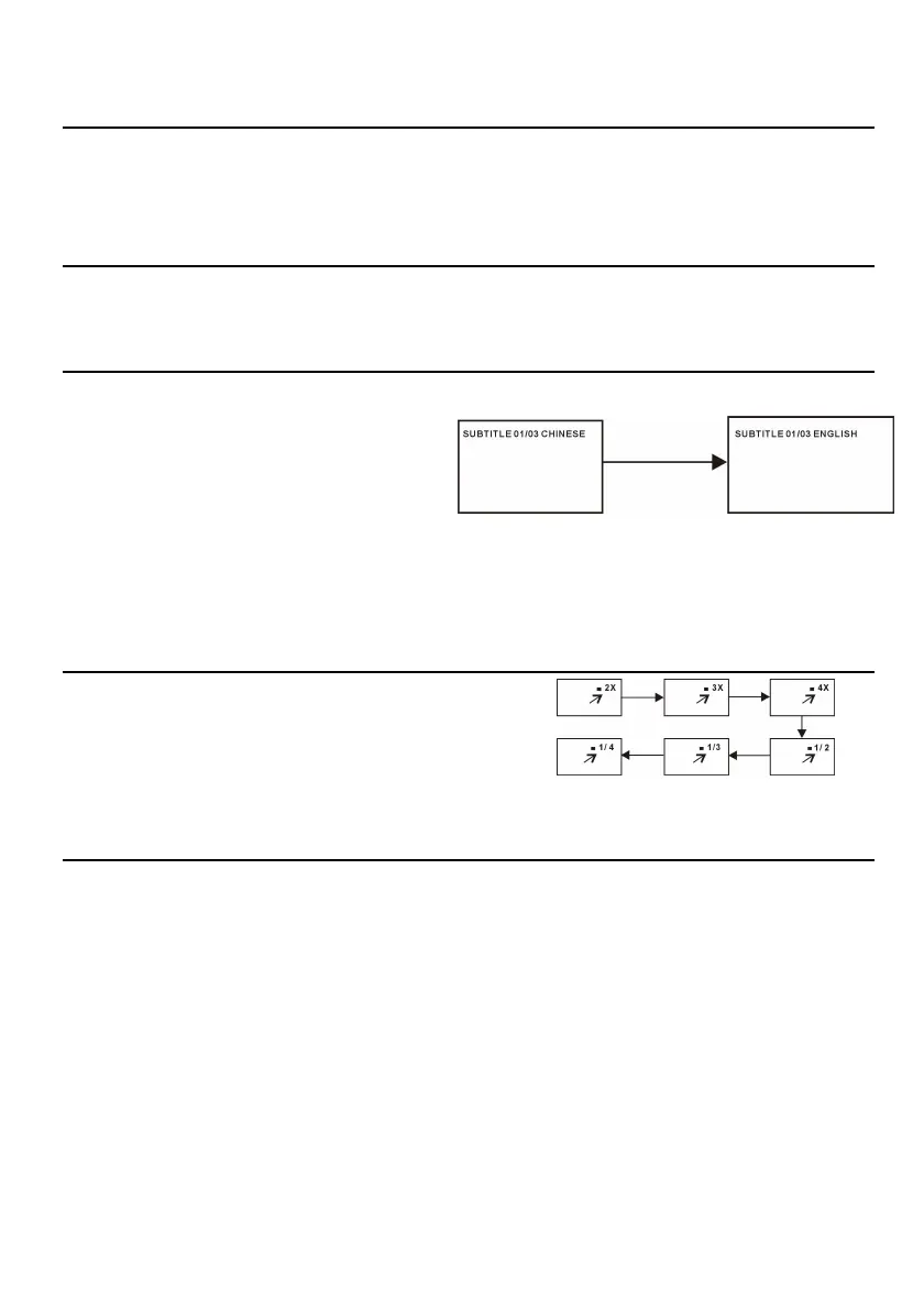 1. Press SUBTITLE button during play, the screen will display the current language.