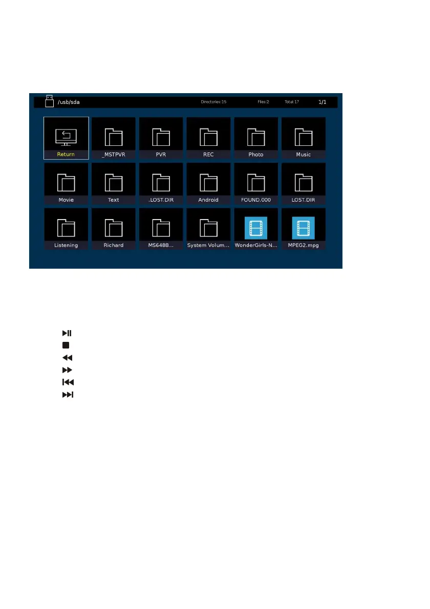- Use navigation buttons to select a Movie/Music/Photo file and press OK to start playback.