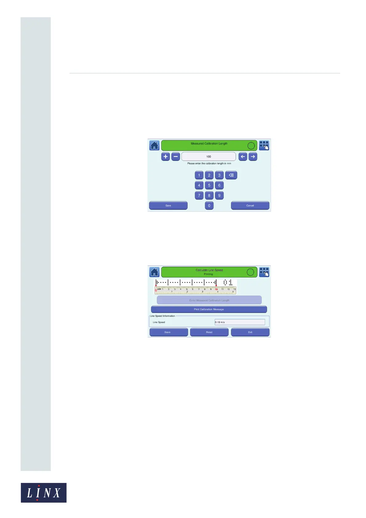 printer calculates the line speed from the entered measurement and displays the Calculate