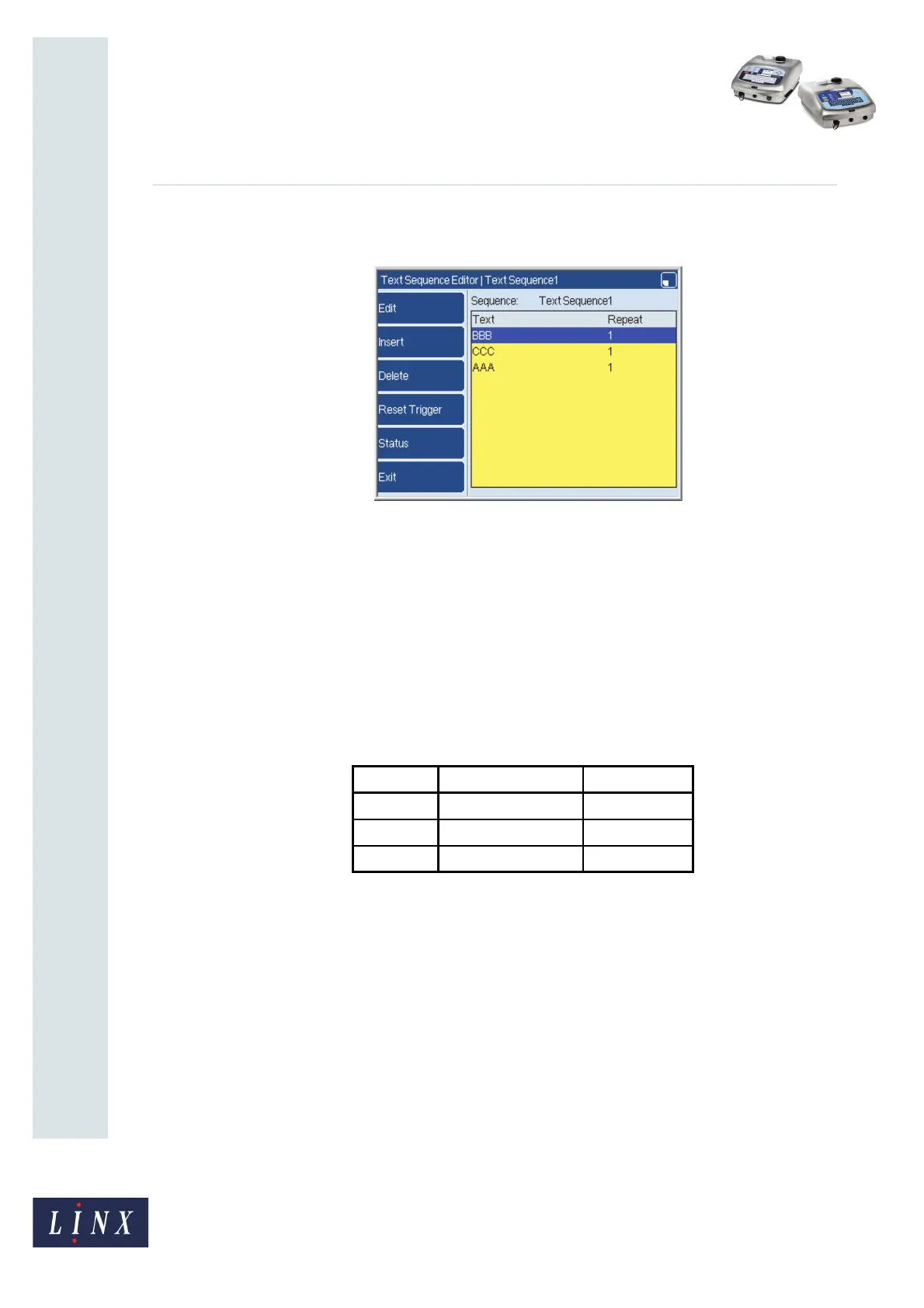 If you change the setting to “3” for the text item “AAA” in the example Text Sequence, the