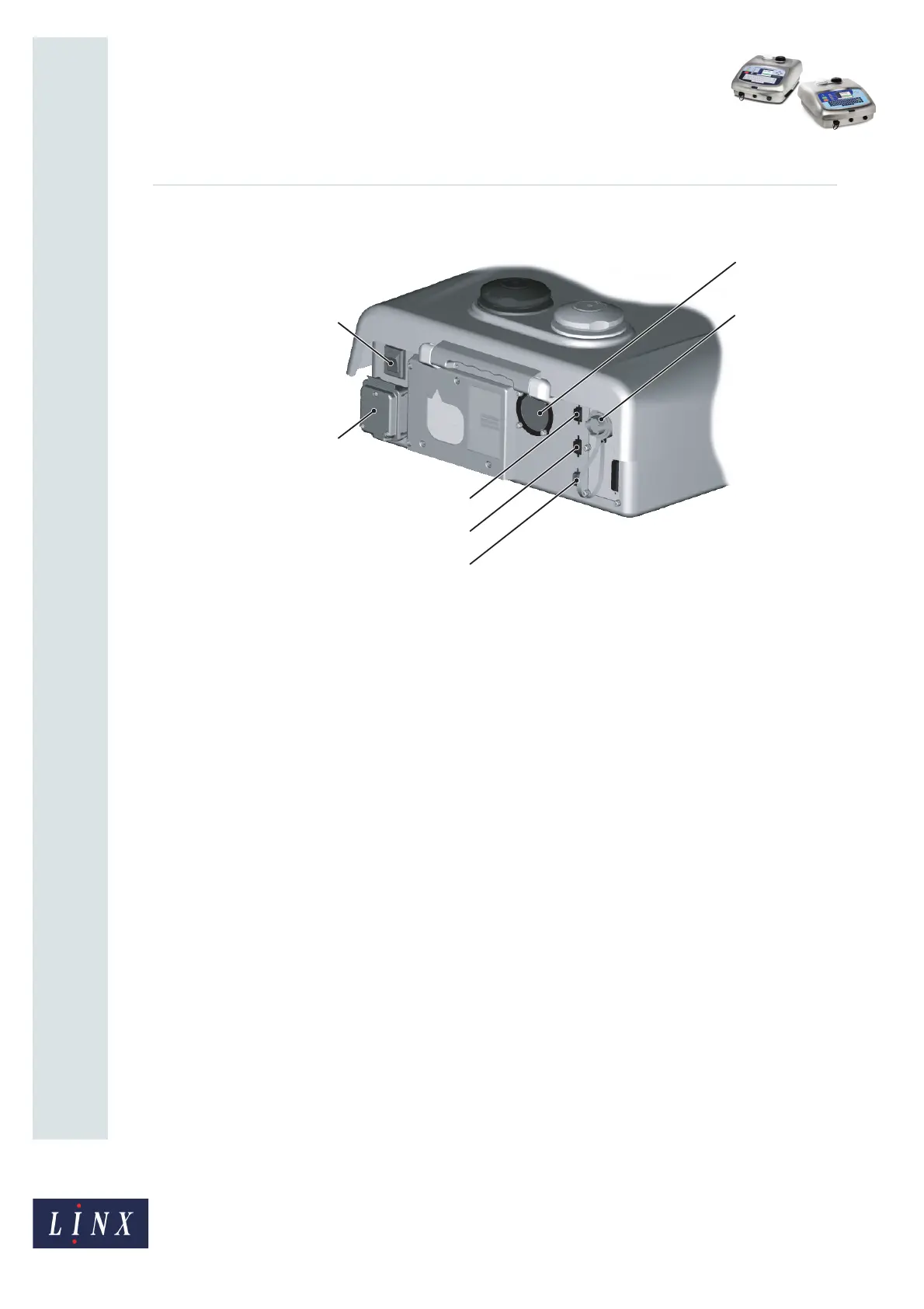 Figure 1 shows the layout of the rear panel of the Linx 5900 and 7900 printers.