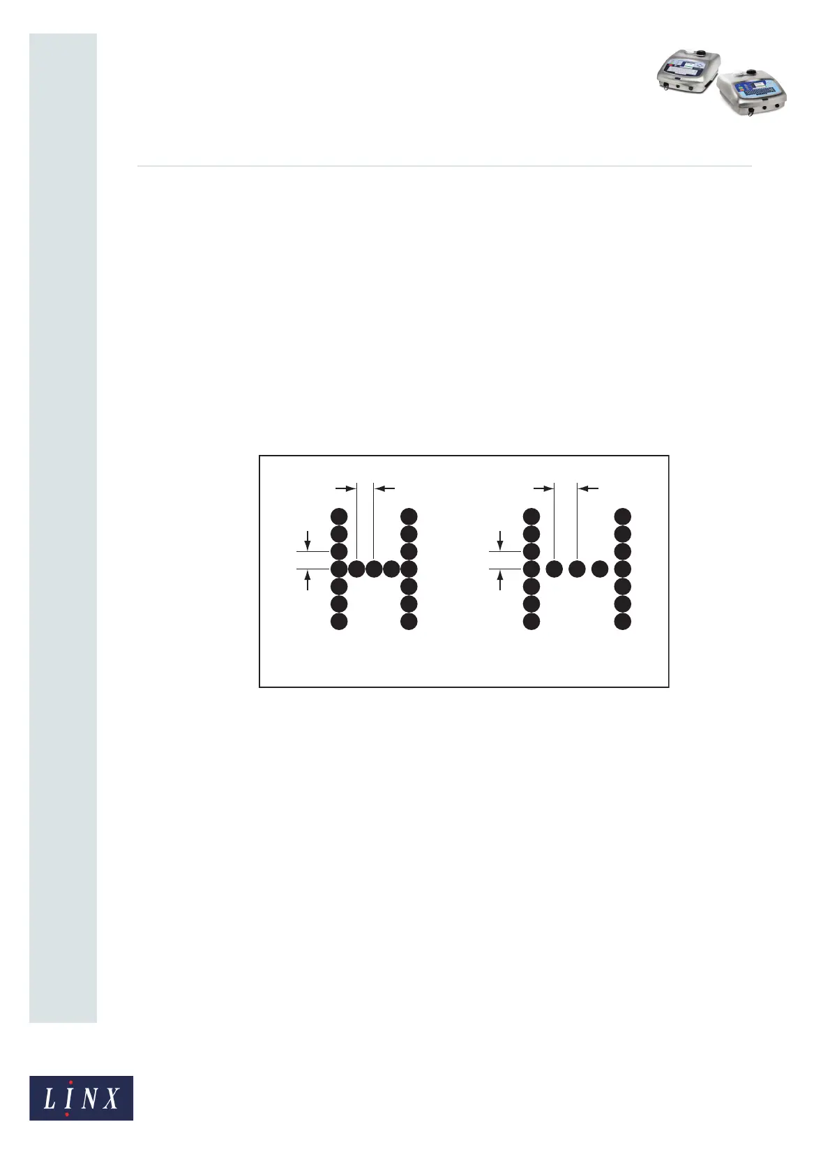 In Figure 8 (a) the letter ‘H’ is printed at the Ideal Raster Pitch—the horizontal spacing (X1)