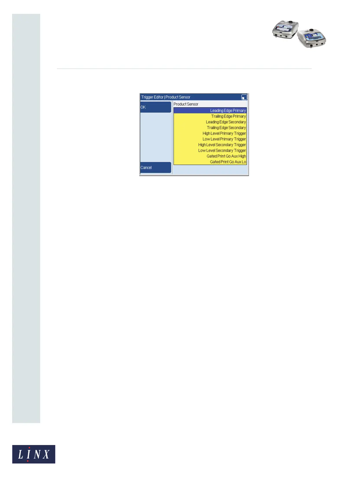 Figure 19. Trigger Editor: Product Sensor page