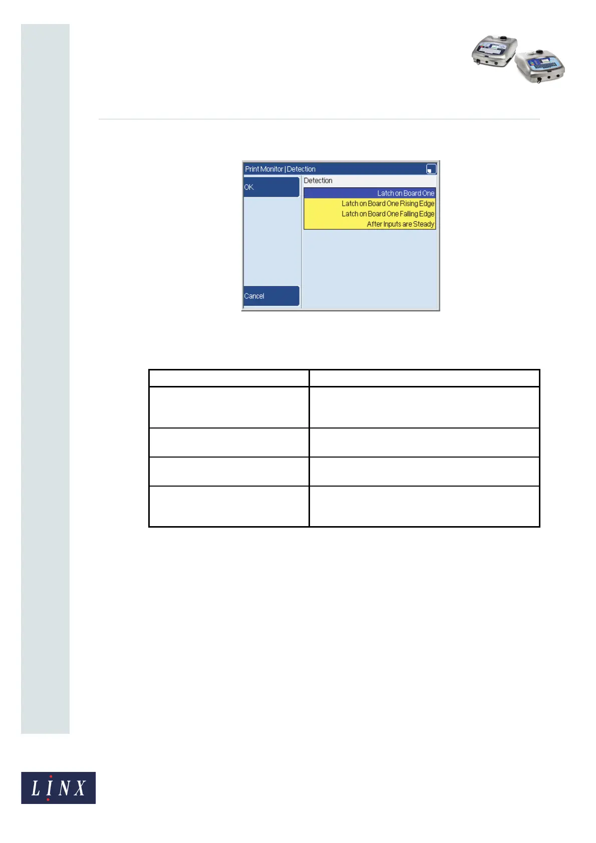 Table 3. Detection options for change in input state