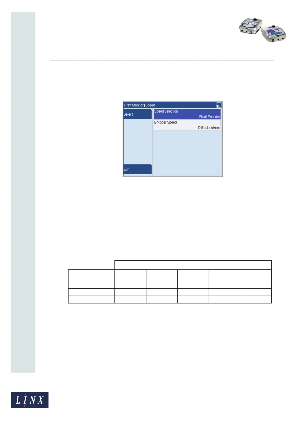 The following table shows the pulses per mm values for the combinations of Linx