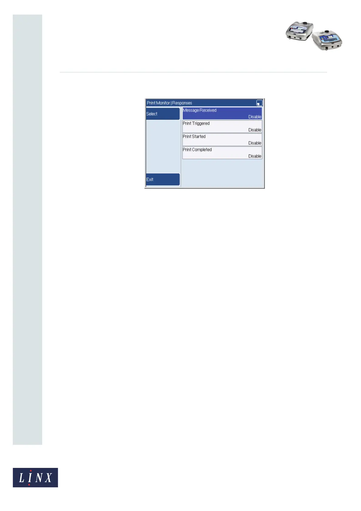 acknowledge a print trigger. The standard setting is ‘Disable’.