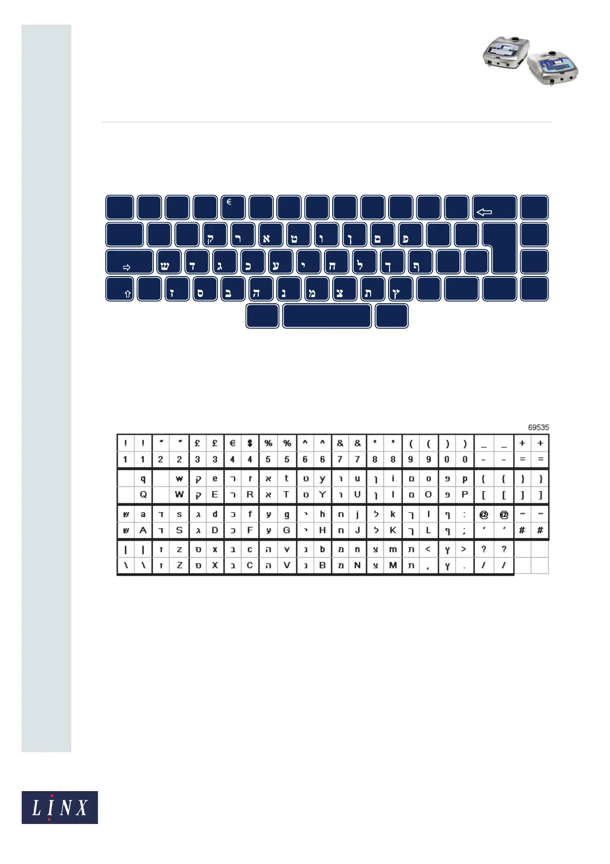 The layout of the 5900/7900 Hebrew keyboard is shown in Figure 45.