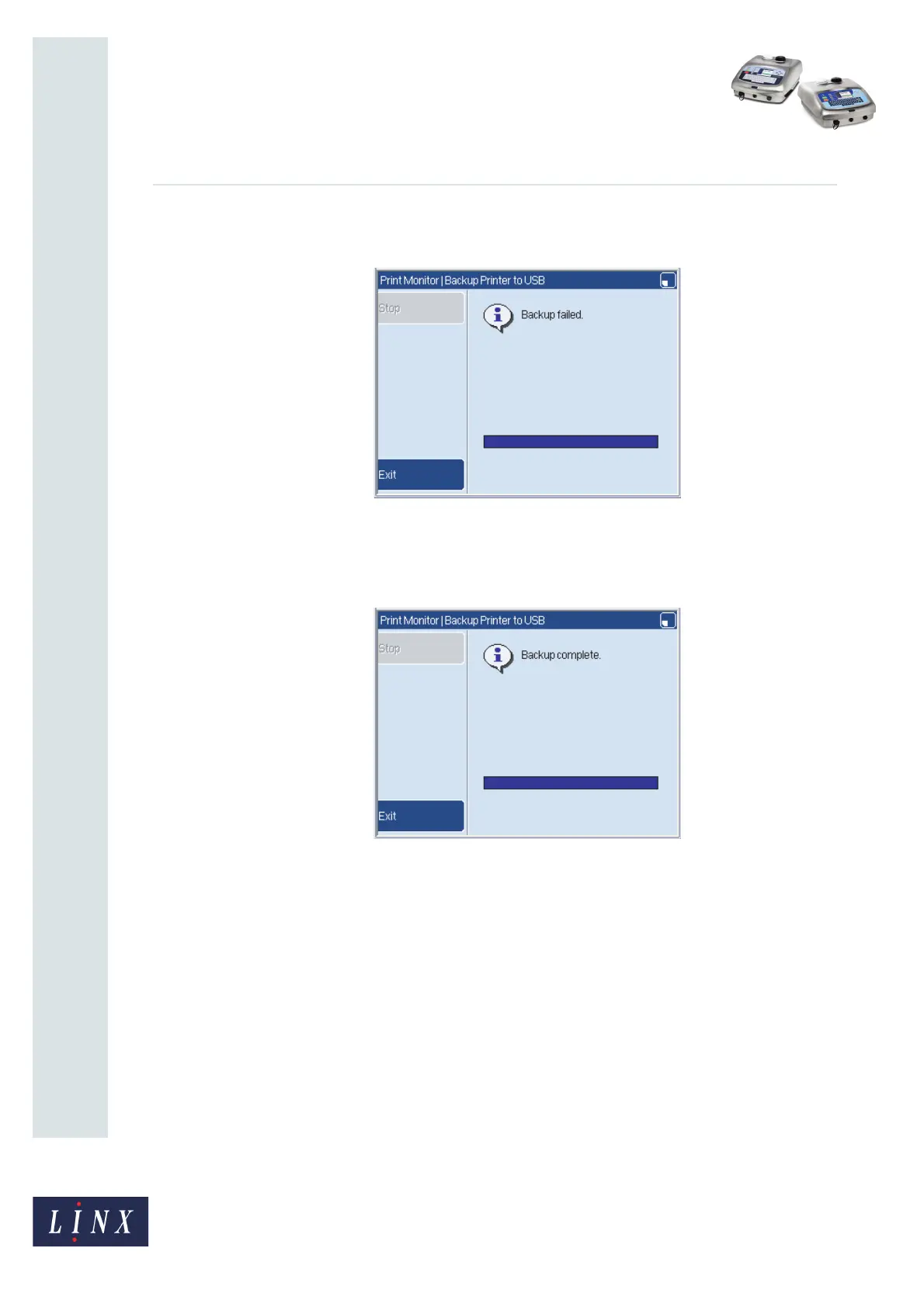 Figure 14. Printer backup failed message