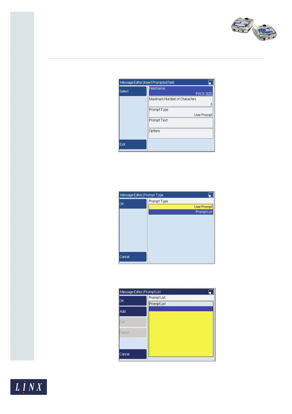 5 Press the OK key to confirm the setting. The Prompt List page is displayed.