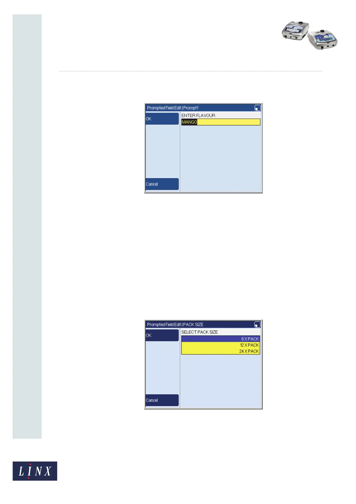 4 Press the OK key. The printer displays the Prompted Field Edit page for the