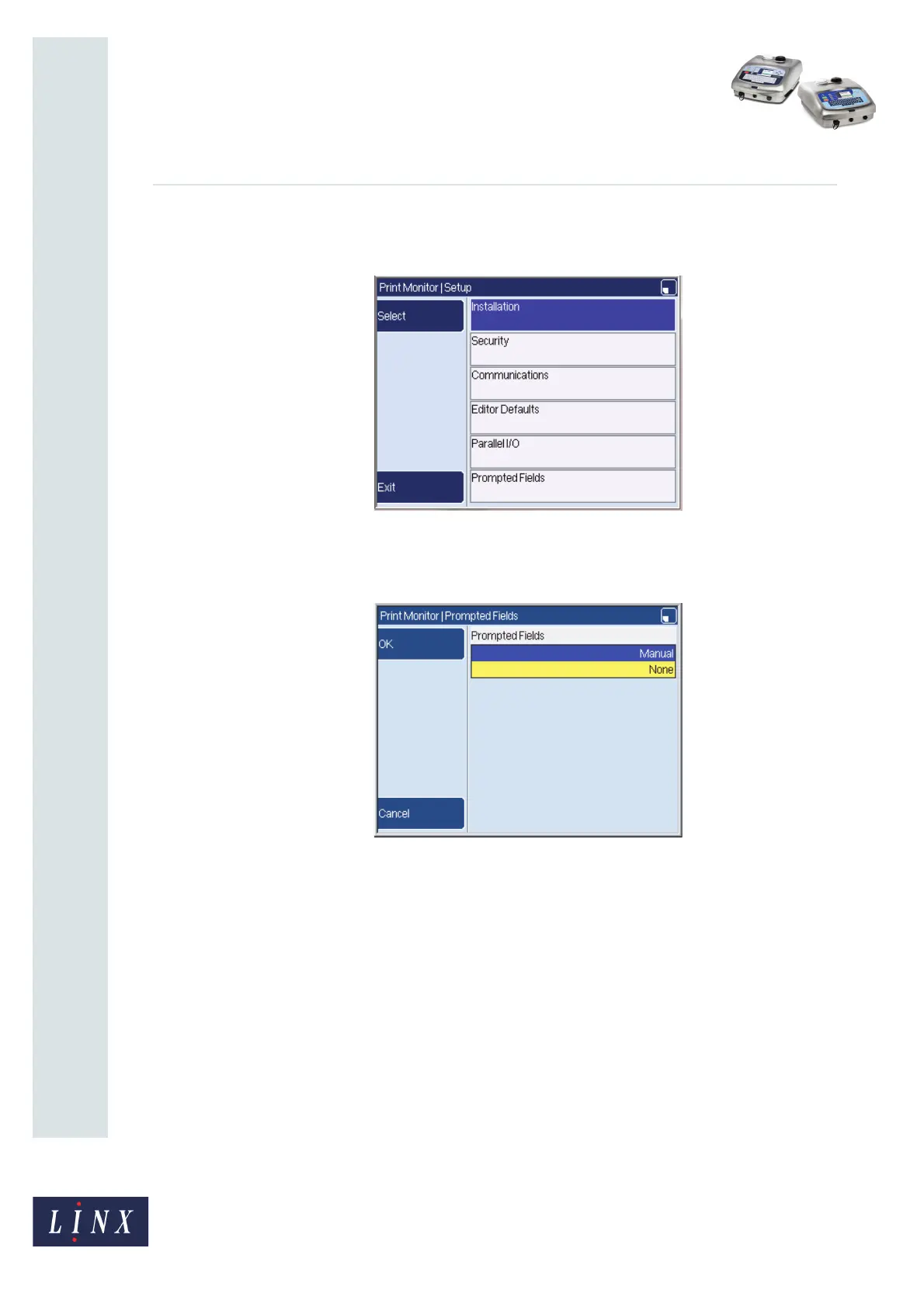 printer prompts you to enter the prompted field information