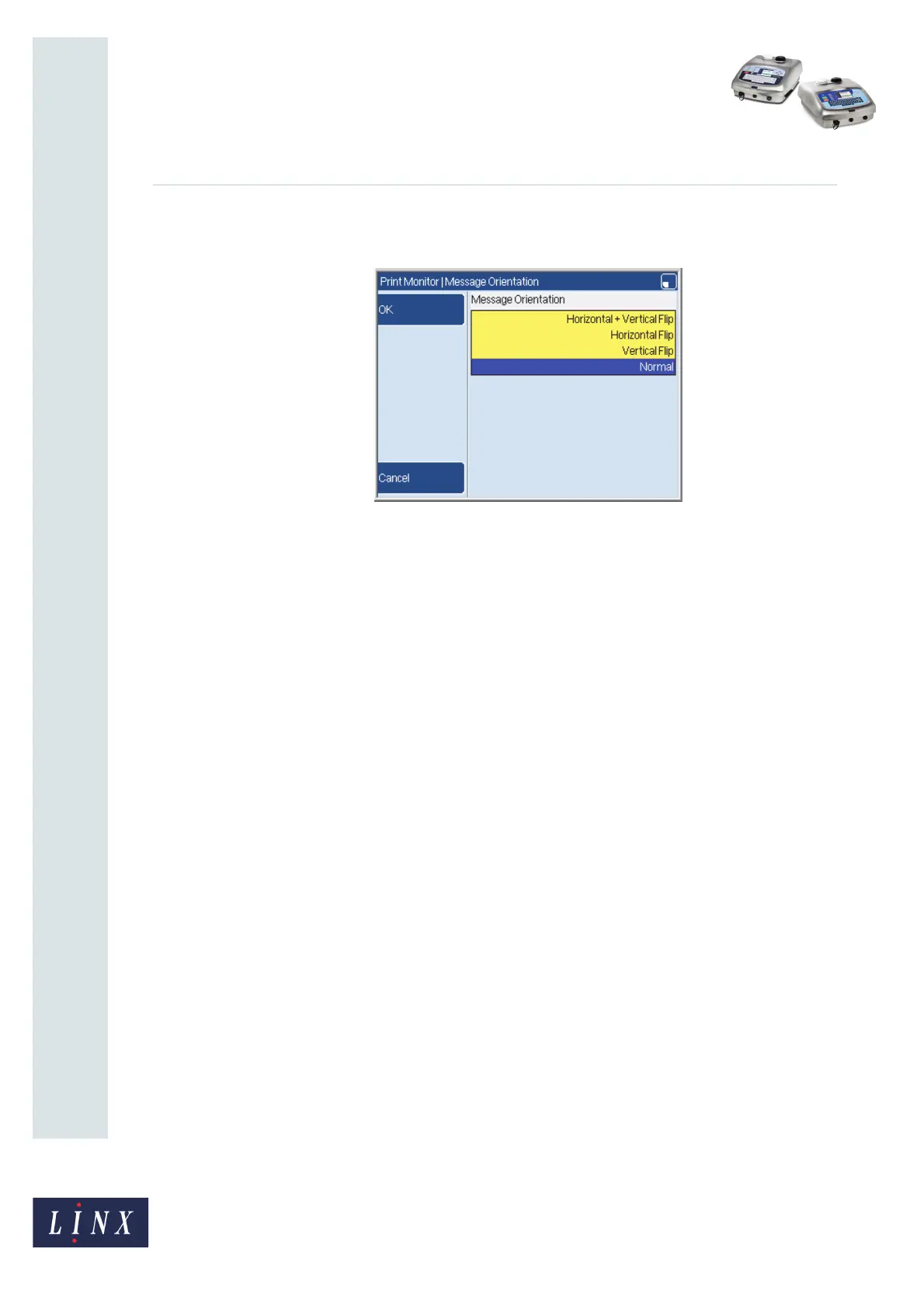 Use the Up arrow key or the Down arrow key to highlight the required orientation. Then do