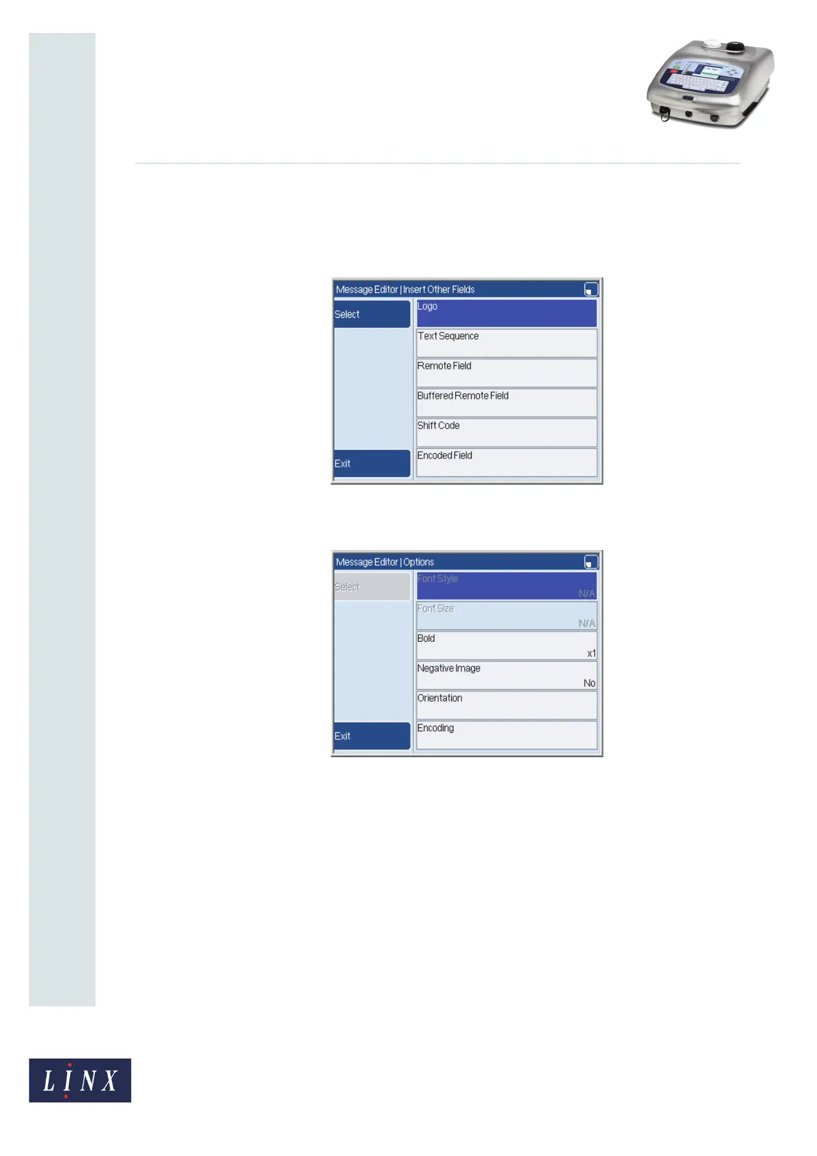 2 At the Message Editor page, press the Other Fields key to display the Insert Other