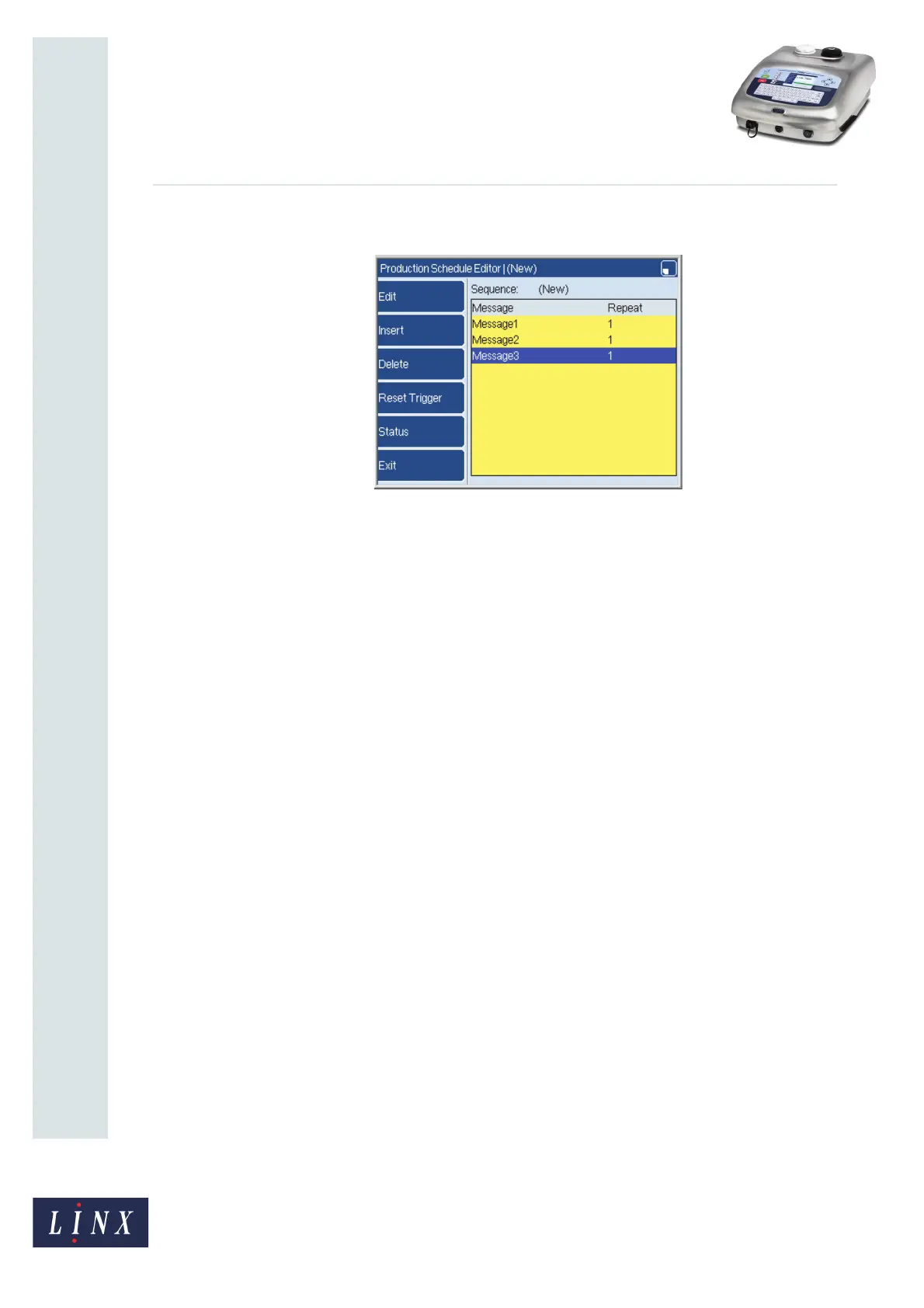 Press the Exit key to save the completed Production Schedule. The printer displays the Save