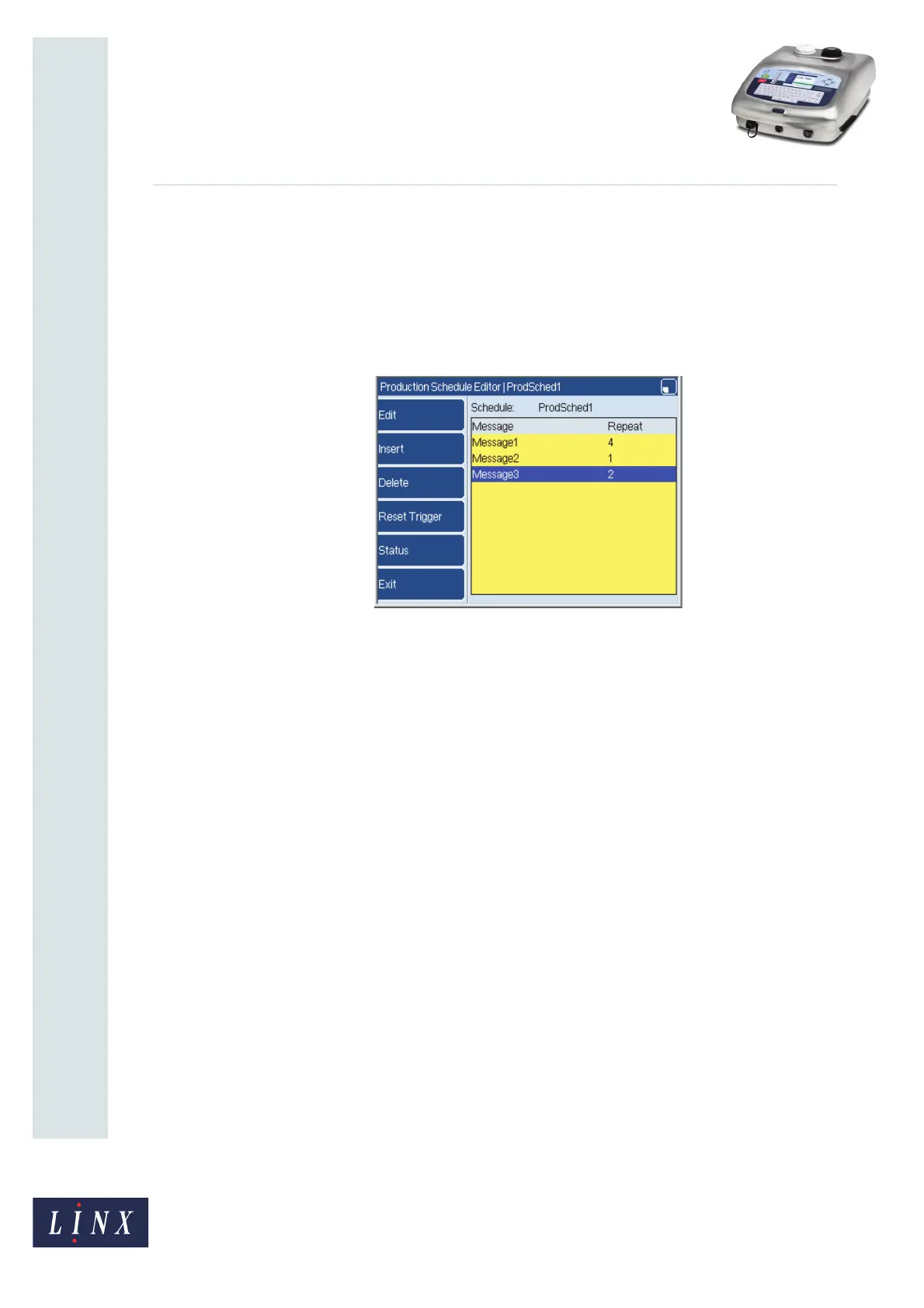 • Repeat—in ‘Multiprint’ mode a message in a Production Schedule will be
