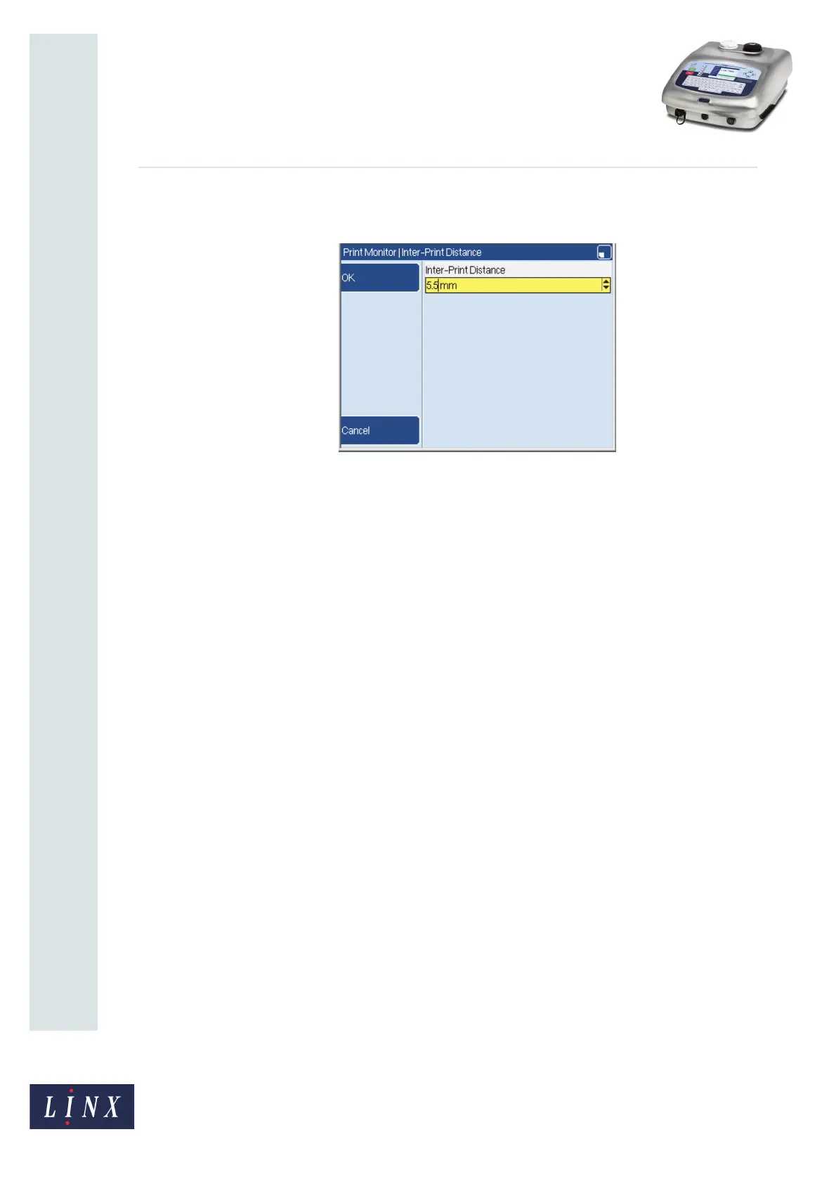 require from the Message Store. The Inter-Print Distance page is displayed.