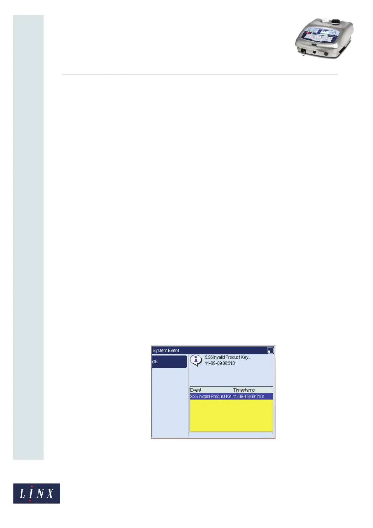 in the ‘Printing’ state) if an unrecognised product key is scanned or if no