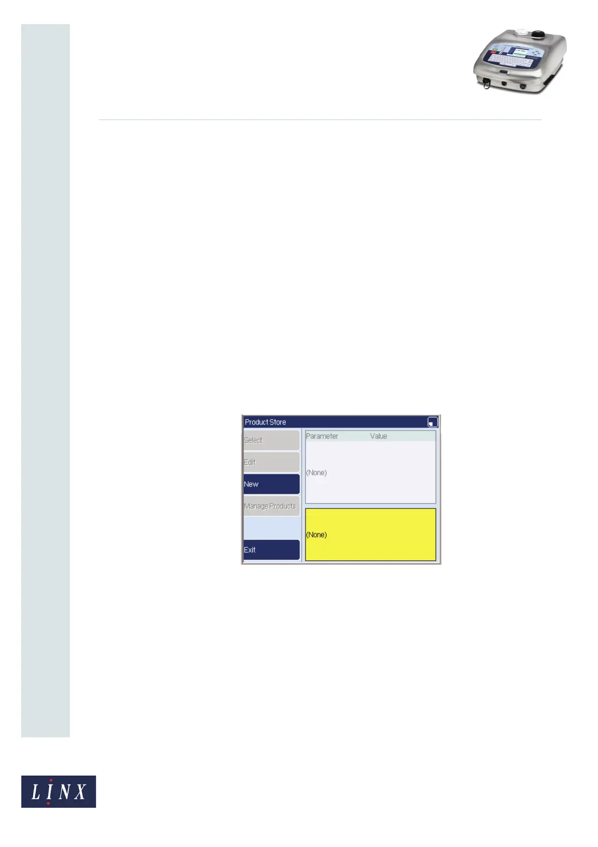 NOTE: You cannot create a new product selection if the printer is in the ‘Printing’ state.
