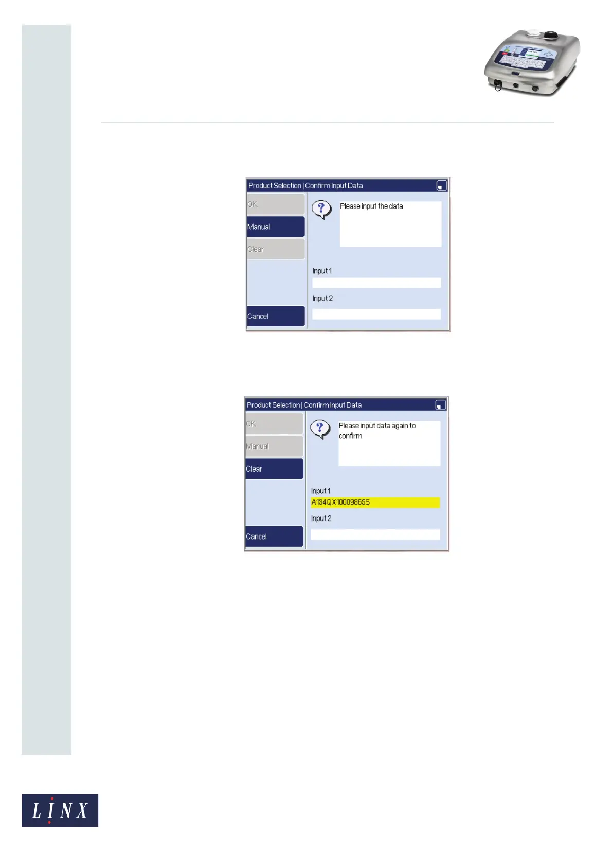2 Press New to display the Confirm Input Data page, where you can enter the input