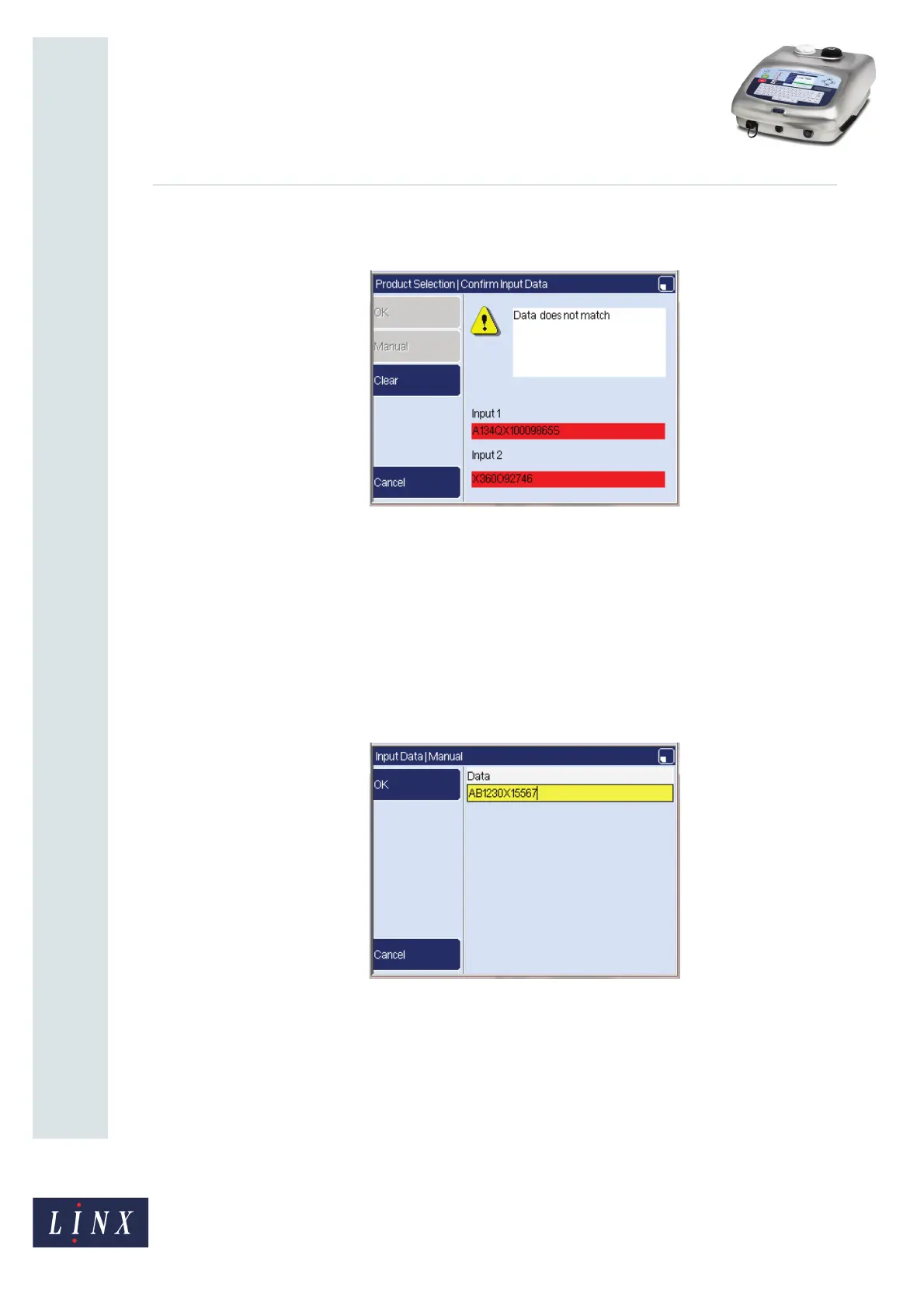 If you need to enter data manually, you can use the Manual key on the Confirm Data Input