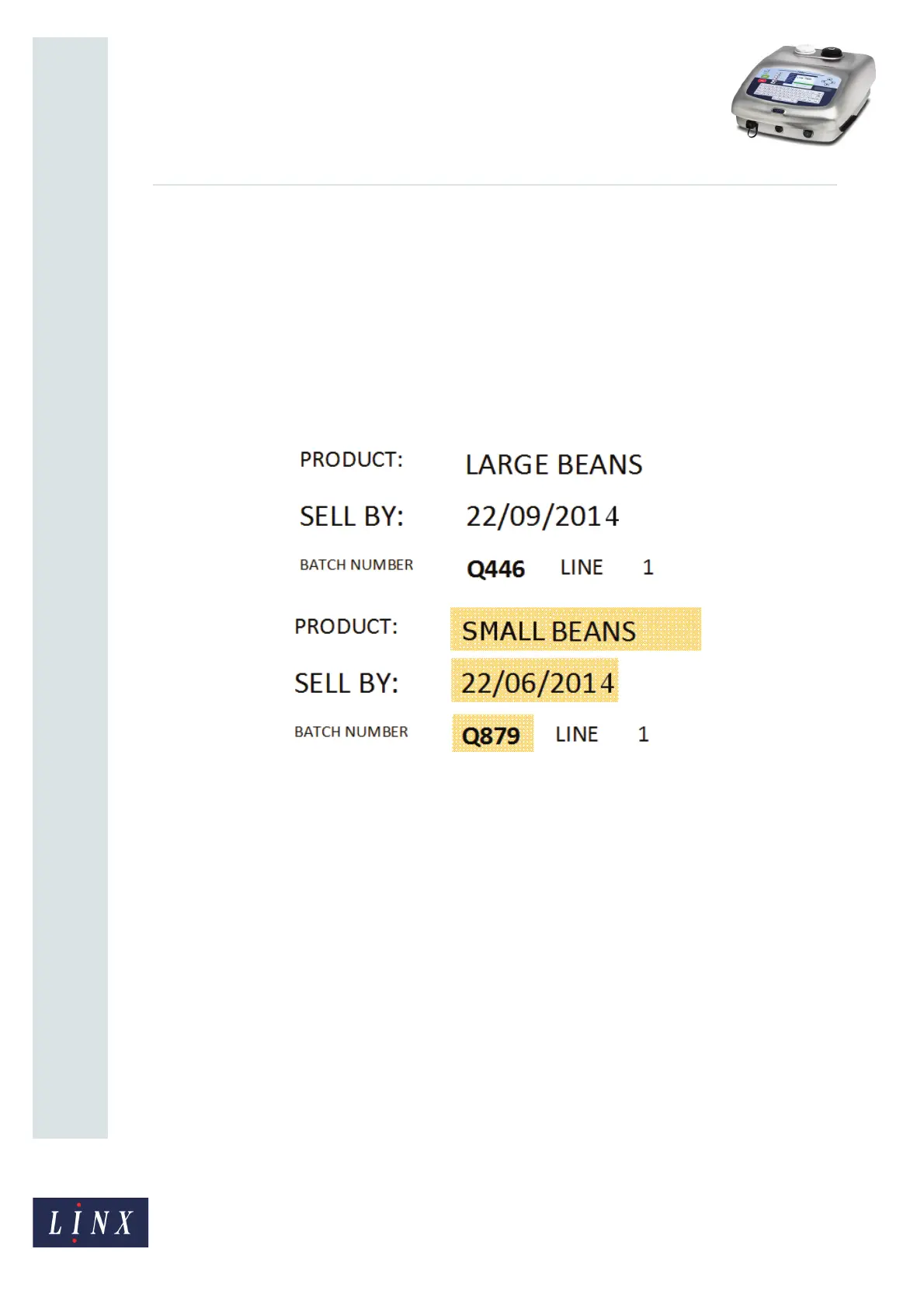 • The printer is used on a number of production lines in the factory. The barcode data