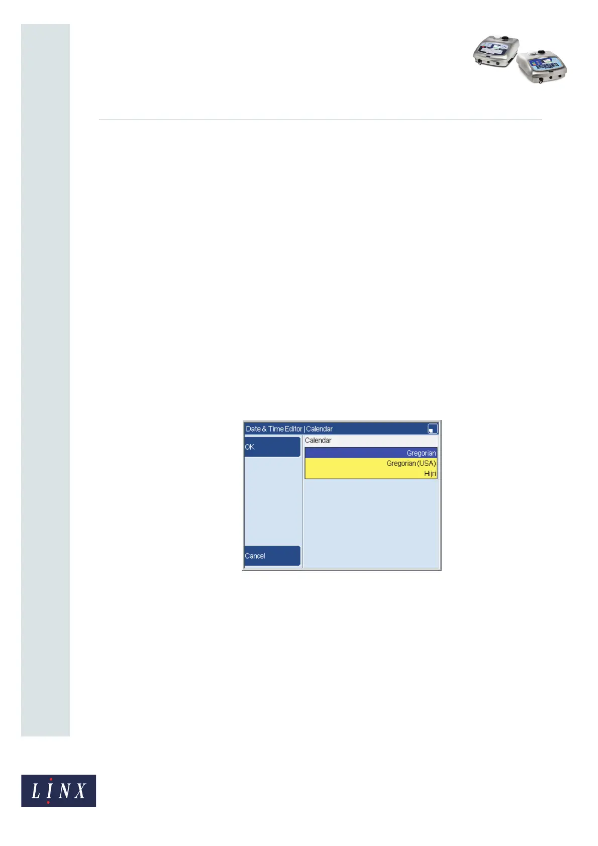 Highlight the required calendar and press the OK key to return to the Date & Time Editor