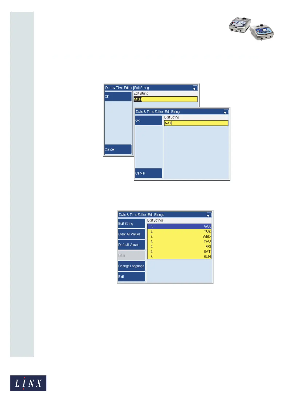 2 Press the Edit String key to display the selected string (“MON” in this example).