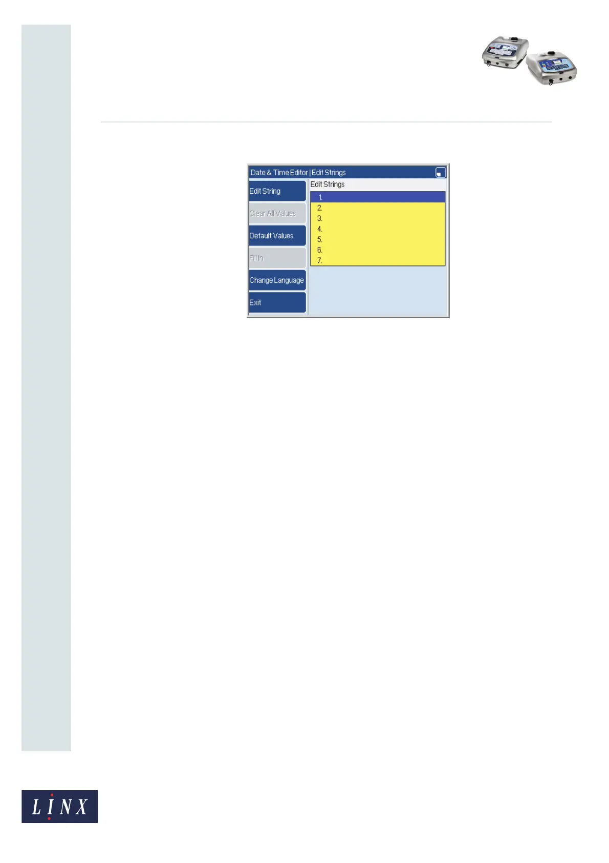 If you press the Fill In key at the Edit Strings page, the printer automatically enters a string