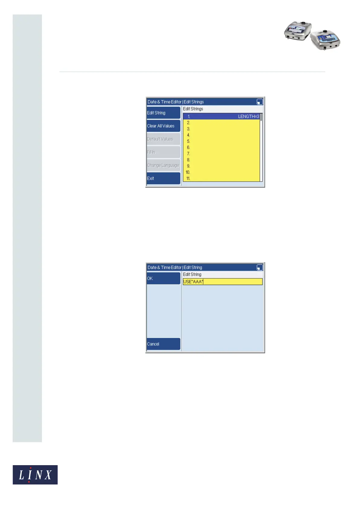 9 Move the highlight to the first empty position (line 2) then press the Edit String key
