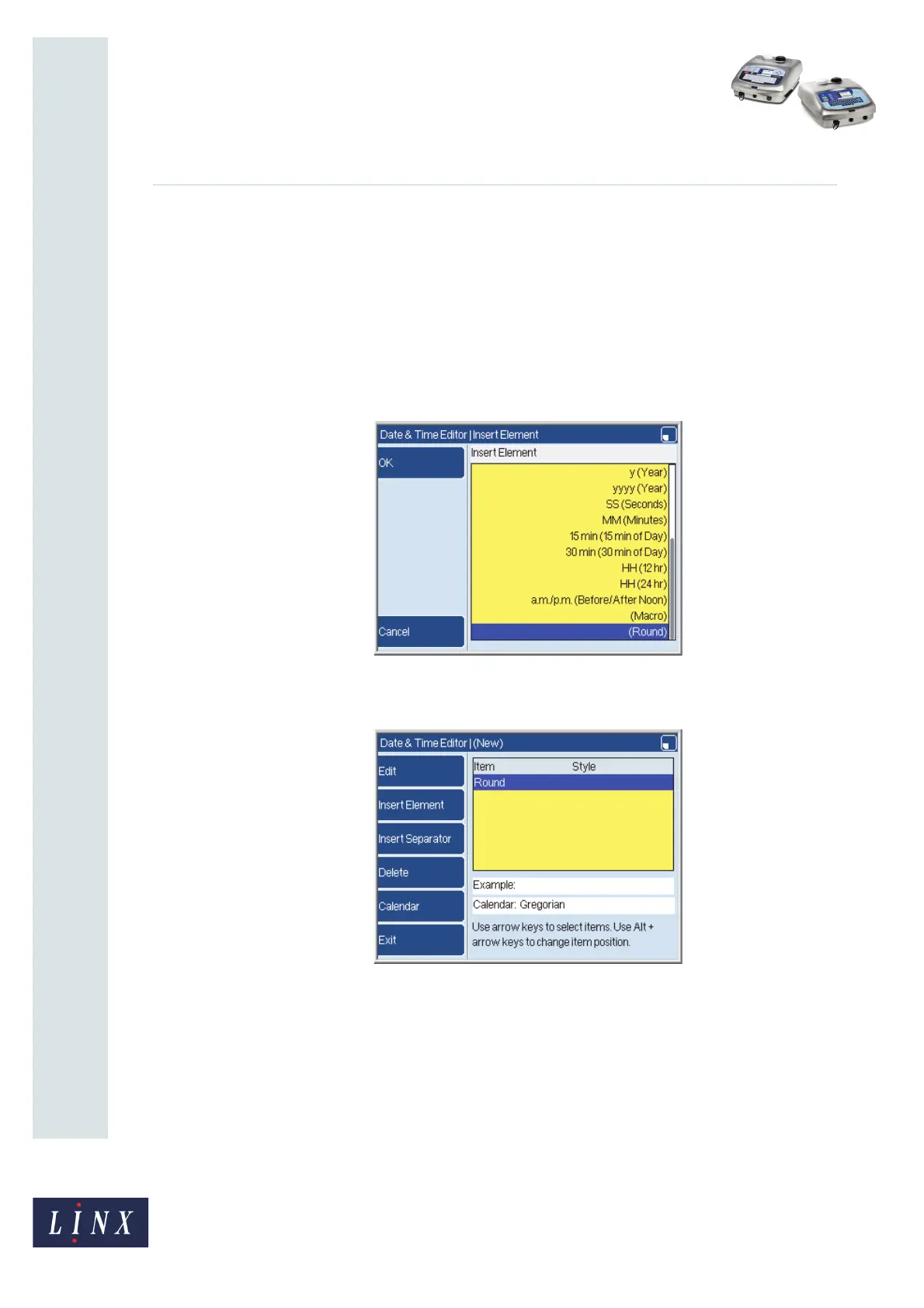 2 At the Insert Element page, use the Down arrow key to highlight the ‘(Round)’
