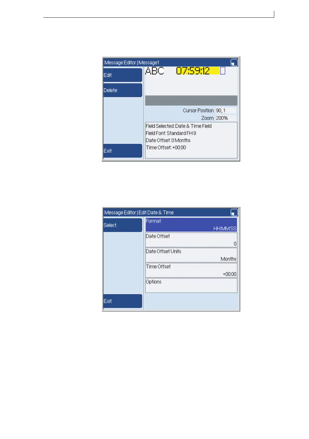 Date field or a Time field, the printer displays the Edit Date & Time page: