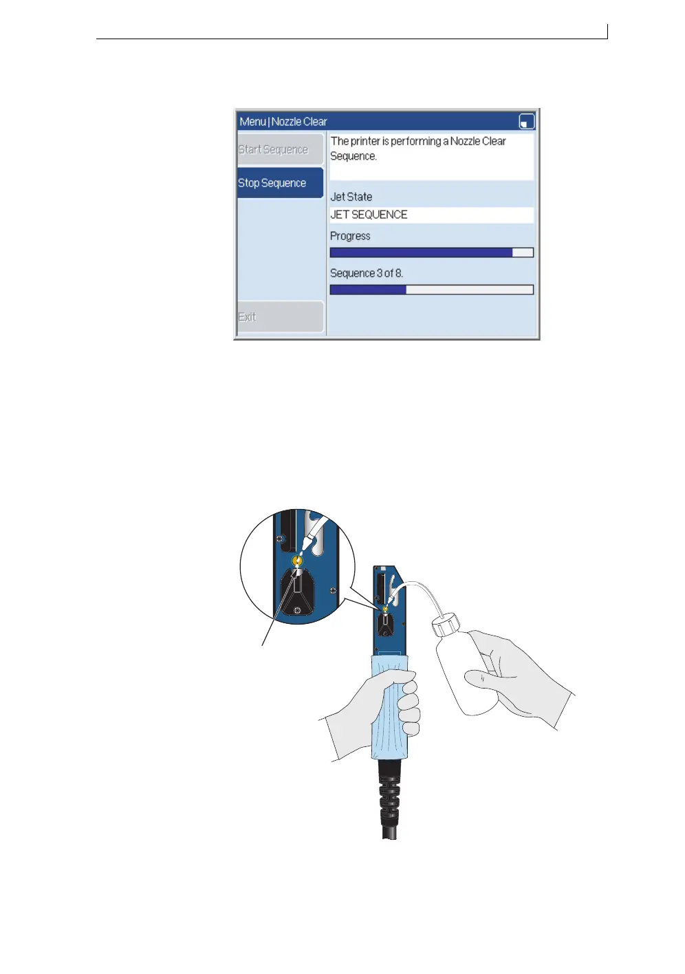 5. Press the Start Sequence key. The first Nozzle Clear sequence starts.