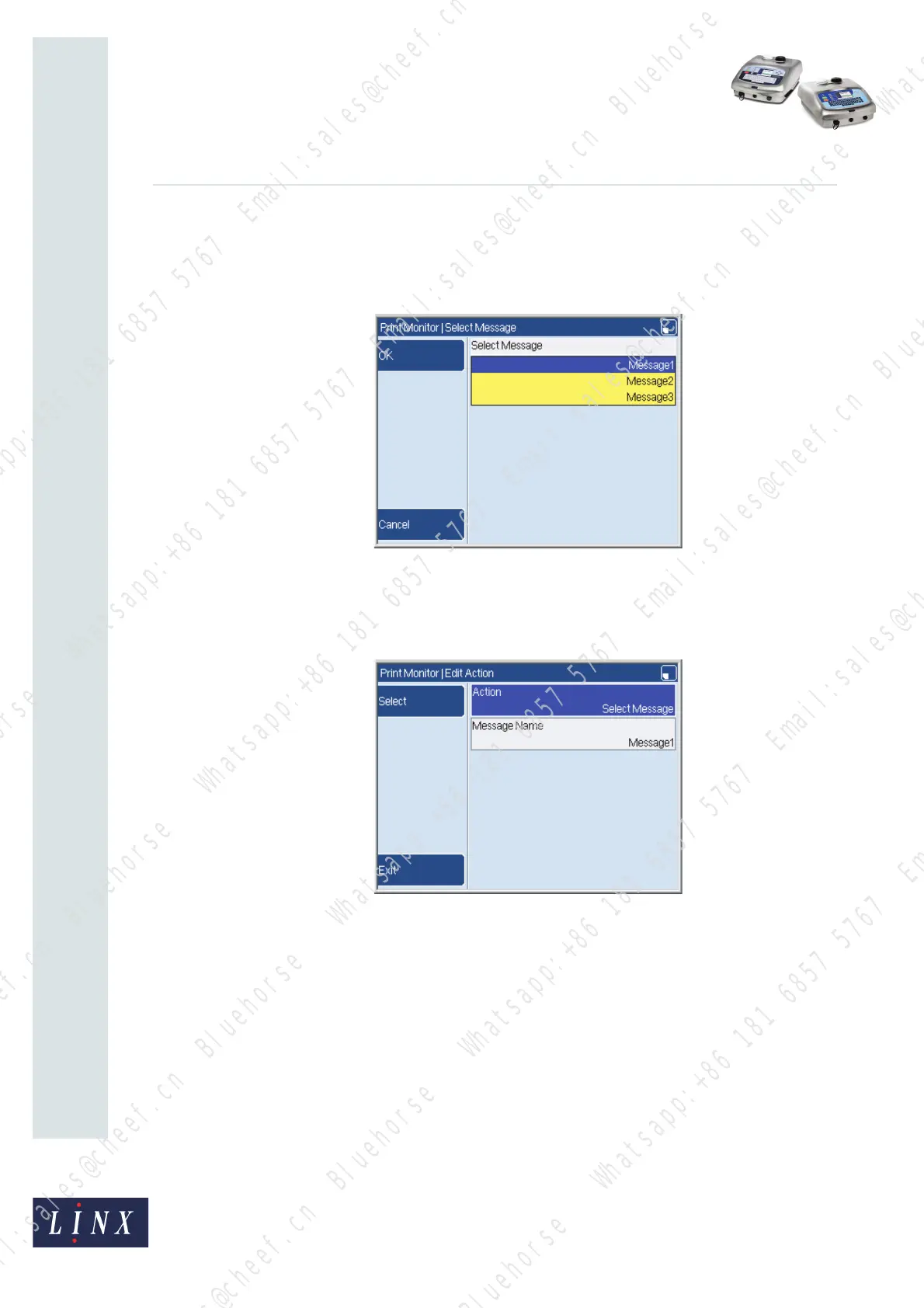 8 If you use the ‘Select Message’ action, the printer displays an additional page, as
